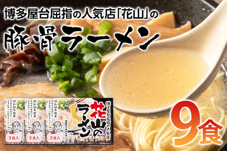福岡県田川市 博多屋台屈指の人気店「花山」の豚骨ラーメン(9食) 10,000円 出典:ふるなび