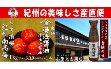 和歌山県湯浅町 M6031_紀州南高梅しそ漬梅干 1kgと湯浅醤油 1本 14,000円 出典:ふるなび