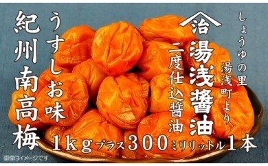 和歌山県湯浅町 M6034_紀州南高梅うすしお味 1kgと湯浅醤油 1本 14,000円 出典:ふるなび