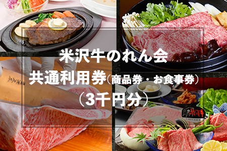 山形県米沢市 米沢牛のれん会共通利用券3枚組(3千円分) 米沢牛 利用券 お食事券 商品券 10,000円 出典:ふるなび