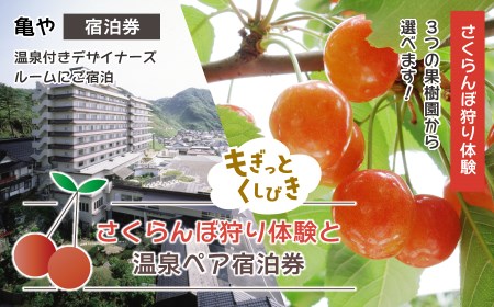 山形県鶴岡市 L24-901 【※事前予約要】山形県鶴岡市 「もぎっとくしびき さくらんぼ狩り体験と温泉ペア宿泊券」 220,000円 出典:ふるなび