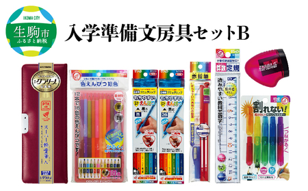 奈良県生駒市 入学準備文房具セット(プラケース入り/ブルー)(筆入れグリーン) 15,000円 出典:ふるなび