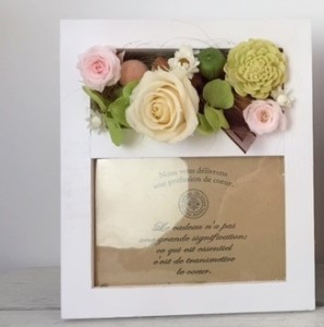 長野県坂城町 ローズガーデンのフォトスタンドピンク プリザーブドフラワー 10,000円 出典:ふるなび