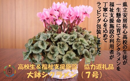 千葉県南房総市 【思いやり型返礼品】高校生と福祉支援施設が協力してお届けする たくさんの愛が詰まった大鉢シクラメン(11月末発送) 14,000円 出典:ふるなび