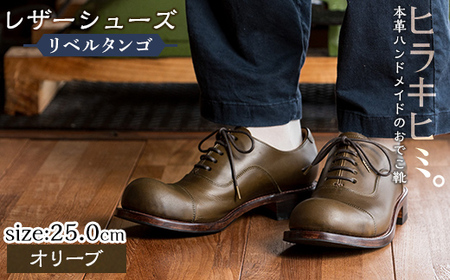 鹿児島県霧島市 P3-004-B-250 本革ハンドメイドのレザーシューズ「おでこ靴(リベルタンゴ)」(オリーブ・25.0cm)【ヒラキヒミ。】 霧島市 革靴 メンズ レディース 靴 300,000円 出典:ふるなび