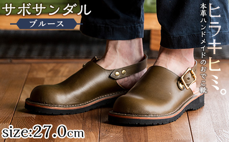 鹿児島県霧島市 P1-033-B-270 本革ハンドメイドのおでこ靴「Blues・サボサンダル」(オリーブ・27.0cm)【ヒラキヒミ。】 霧島市 革靴 メンズ レディース カジュアル サンダル 135,000円 出典:ふるなび