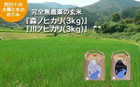 高知県四万十町 【2022年産・新米】完全無農薬の玄米『森ノヒカリ(3kg)』『川ノヒカリ(3kg)』セット Bnm-01 22,000円 出典:ふるなび