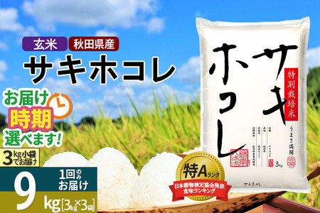秋田県仙北市 【玄米】<新米>《定期便3ヶ月》秋田県産 サキホコレ 特別栽培米 9kg (3kg×3袋)×3回 令和5年産 9キロお米 開始時期選べる 57,000円 出典:ふるなび