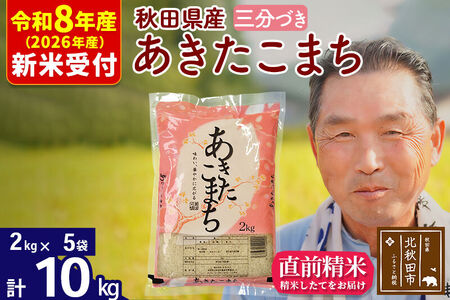 秋田県北秋田市 <新米予約>秋田県産あきたこまち 10kg (2kg×5袋) 【三分づき】 令和5年産 14,000円 出典:ふるなび