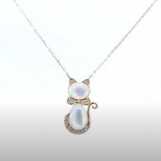 K18イエローゴールド シェル ペンダントネックレス 猫