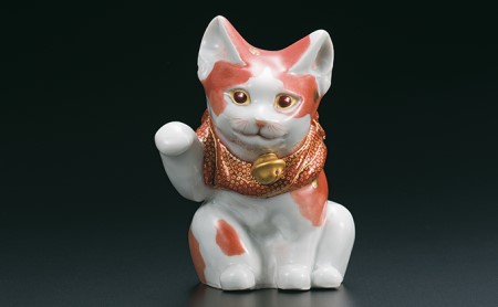 石川県能美市 九谷焼 福島武山作 赤絵細描4号招き猫 500,000円 出典:ふるなび