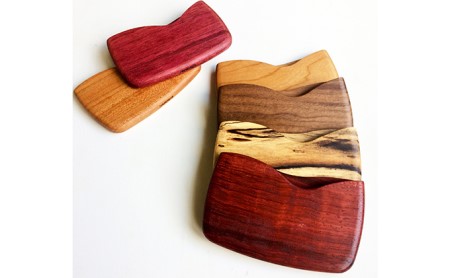千葉県南房総市 木製 カード・バネ内臓逆さで落ちない名刺ケース(角丸みチェリー赤茶/ナット濃茶/パープル紫) 21,000円 出典:ふるなび