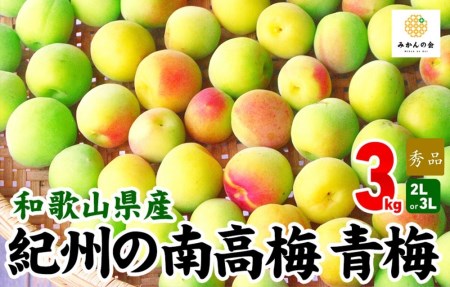 和歌山県有田川町 有田の南高梅 3kg 2L or 3L 青梅 A品 秀品 和歌山県産 梅酒作り用 梅ジュース作り用 [0649] 12,000円 出典:ふるなび