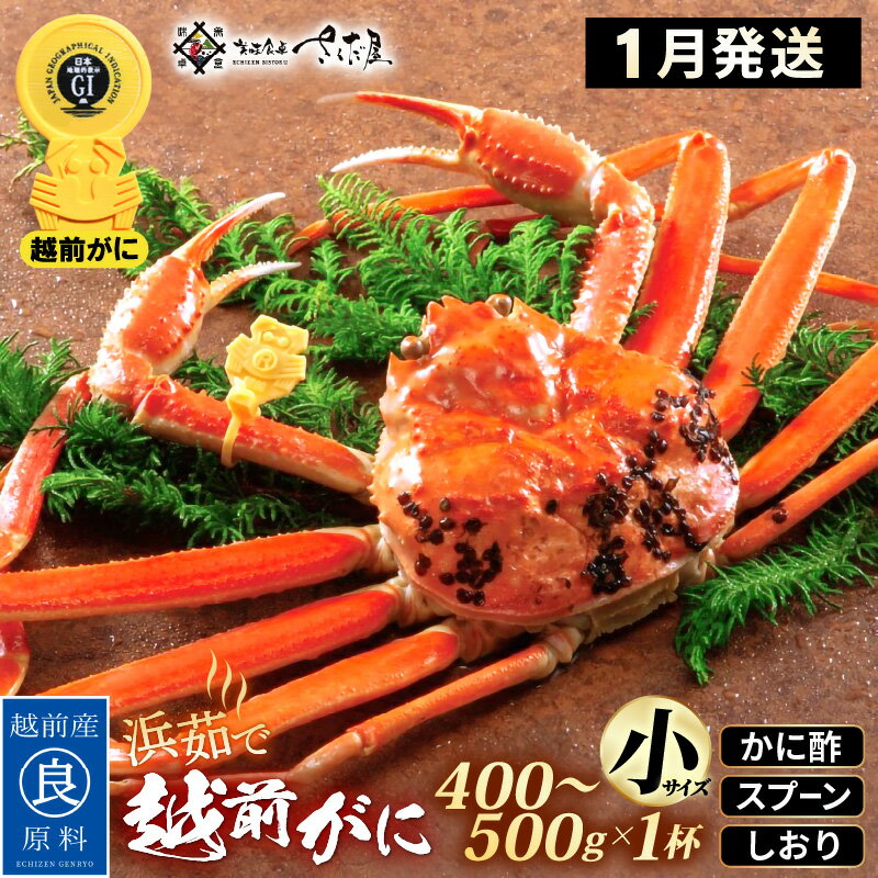浜茹で 越前がに 小サイズ(生で400〜500g)× 1杯 かに酢 食べ方しおり スプーン付き【1月発送分】【かに カニ 蟹 ズワイガニ ずわいがに 姿 ボイル 福井県 冷蔵】希望日指定可 備考欄に希望日をご記入ください [e04-x028_01]