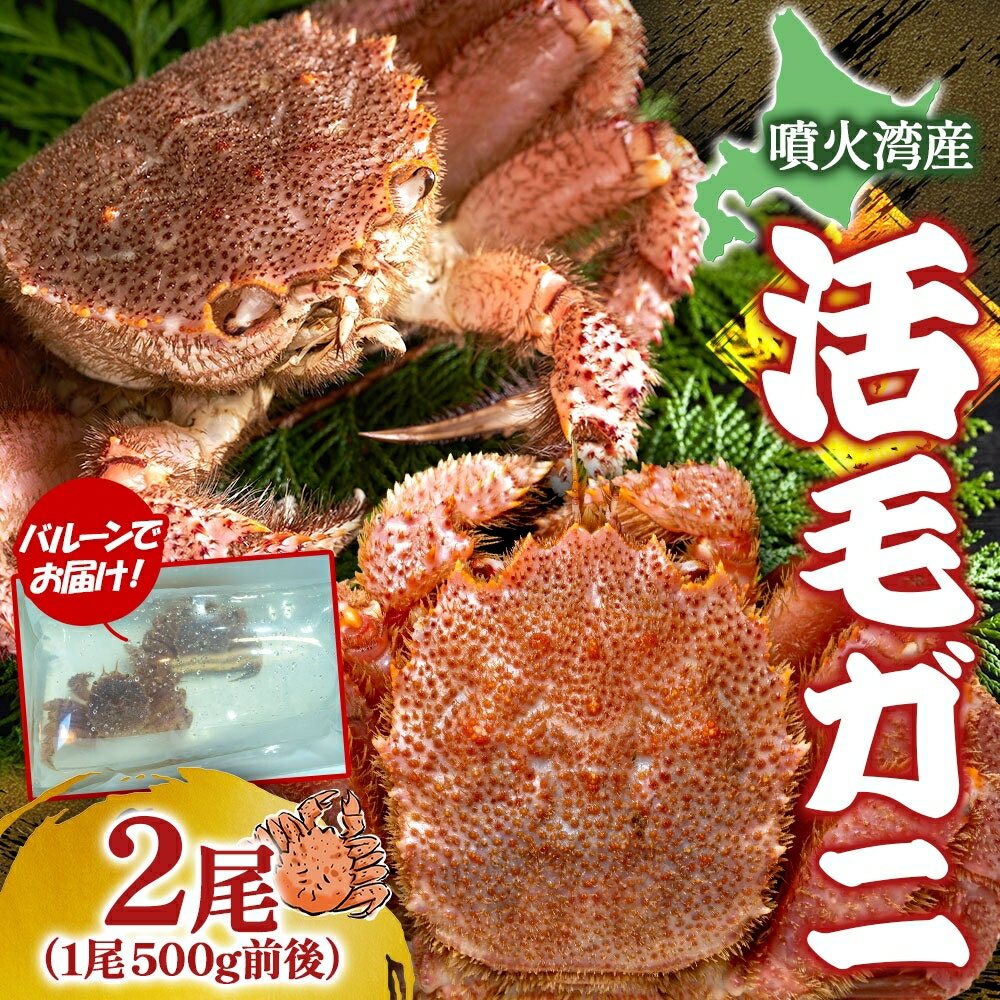 先行受付 北海道 噴火湾産 活毛がに 500g前後×2尾 2026年6月下旬~7月上旬お届け 北海道産 旬 新鮮 毛がに かに カニ 蟹 毛ガニ 毛蟹 カニ味噌 天然 噴火湾 産地直送 お取り寄せ 冷蔵 洞爺湖町 お届け:2026年6月下旬~7月上旬まで
