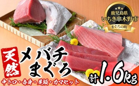 鹿児島県いちき串木野市 天然メバチマグロセット 在庫一掃!大放出1.6㎏!天然メバチまぐろ中トロ、赤身柵・尾頭・カマセットにしたメバチマグロ三昧!刺身に、漬けに、ステーキに♪在庫限りの調理バリエーション豊富なマグロ詰合わせ まぐろ家【N-020】 25,000円 出典:ふるなび