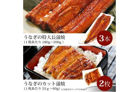 静岡県磐田市 219_うなぎ蒲焼きギフトセット(特大長蒲焼3本・カット蒲焼(小)2枚・650g程度・化粧箱入り)[2023] 40,000円 出典:ふるなび