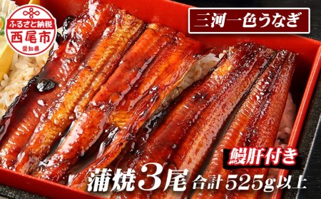 愛知県西尾市 三河一色うなぎ 蒲焼3尾(合計525g以上)鰻肝付き・F008 22,000円 出典:ふるなび