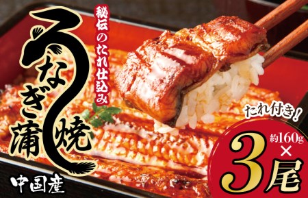 大阪府泉佐野市 秘伝のたれ仕込み うなぎ蒲焼 合計480g(約160g×3尾)鰻 ウナギ 中国産 温めるだけ 簡単 レンジ調理 備長炭 手焼き 期間限定 10,000円 出典:ふるなび
