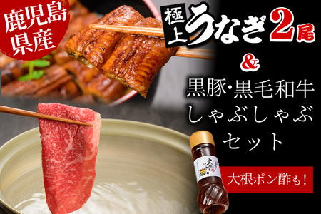 鹿児島県志布志市 鹿児島自慢3点セット(うなぎ・黒毛和牛しゃぶ肉・黒豚しゃぶ肉)合計約1.1kg e7-005 57,000円 出典:ふるなび