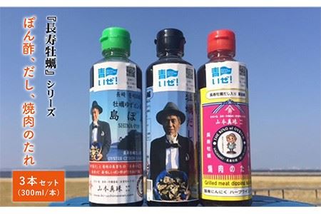 長崎県壱岐市 内海湾『長寿牡蠣』シリーズ3本セット(牡蠣だし・牡蠣ゆずポン酢・焼肉のたれ) [JCS003] 9,000円 出典:ふるなび