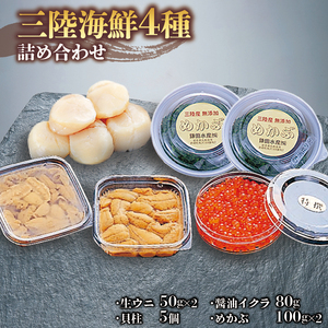 岩手県大船渡市 三陸海鮮4種詰合せ 生うに いくら ほたて めかぶ 無添加 キタムラサキウニ 生うに 醤油いくら 生うに 貝柱 生うに 海鮮 20,000円 出典:ふるなび