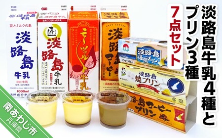 兵庫県南あわじ市 淡路島牛乳4種とプリン3種【7点セット】 8,000円 出典:ふるなび