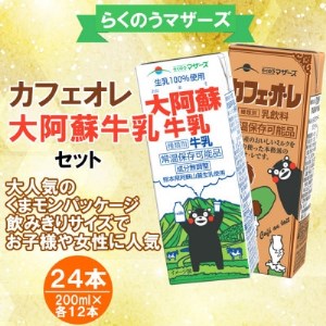 熊本県益城町 大阿蘇牛乳とカフェオレセット 合計24本 200ml×各12本【1301277】 11,000円 出典:ふるなび