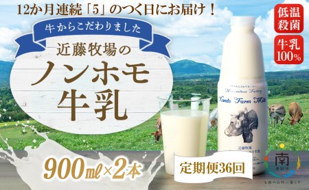 千葉県南房総市 【頒布会】近藤牧場のノンホモ牛乳 900ml×2本「5」のつく日36回連続(12か月分)でお届け 216,000円 出典:ふるなび