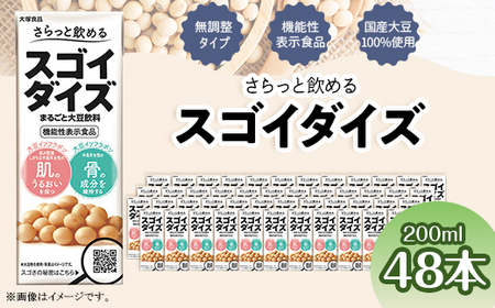群馬県玉村町 3826 さらっと飲めるスゴイダイズ 200ml紙パック×48本入り(機能性表示食品) 25,000円 出典:ふるなび