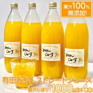 和歌山県印南町 【果汁100%】無添加!贅沢絞りの有田みかんストレートジュース1000ml ×4本セット ※~10月下旬頃※離島不可(北海道、沖縄本島も不可)※着日指定不可 10,000円 出典:ふるなび