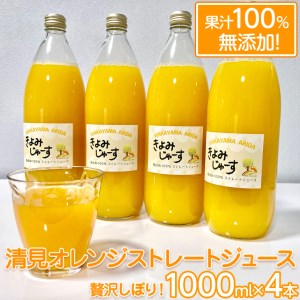 和歌山県印南町 【果汁100%】無添加!贅沢絞りの清見オレンジストレートジュース1000ml×4本セット ※~10月下旬頃※離島不可(北海道、沖縄本島も不可)※着日指定不可 10,000円 出典:ふるなび