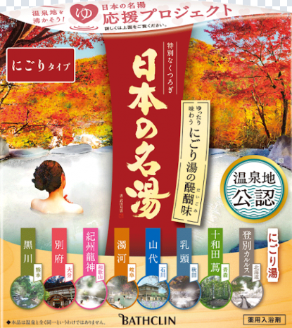 バスクリンの「日本の名湯」シリーズは、藤枝市でのみ製造されている入浴剤です。登別や別府をはじめ、全国の名湯の湯質や香りを忠実に再現しており、やさしいにごり湯が温泉気分を演出します。肌なじみの良さや身体の温まり感も本格的で、毎日のバスタイムがまるで旅先の温泉のようなひとときに変わります。