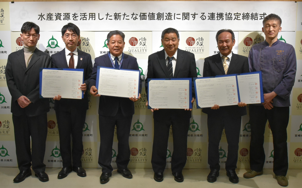 川南町、川南町漁業協同組合、川南町商工会、一般社団法人川南町観光協会、川南まちづくり株式会社の5者が連携し、業種の垣根を越えて漁業の課題に地域全体で向き合う体制を整えていく取組です。
