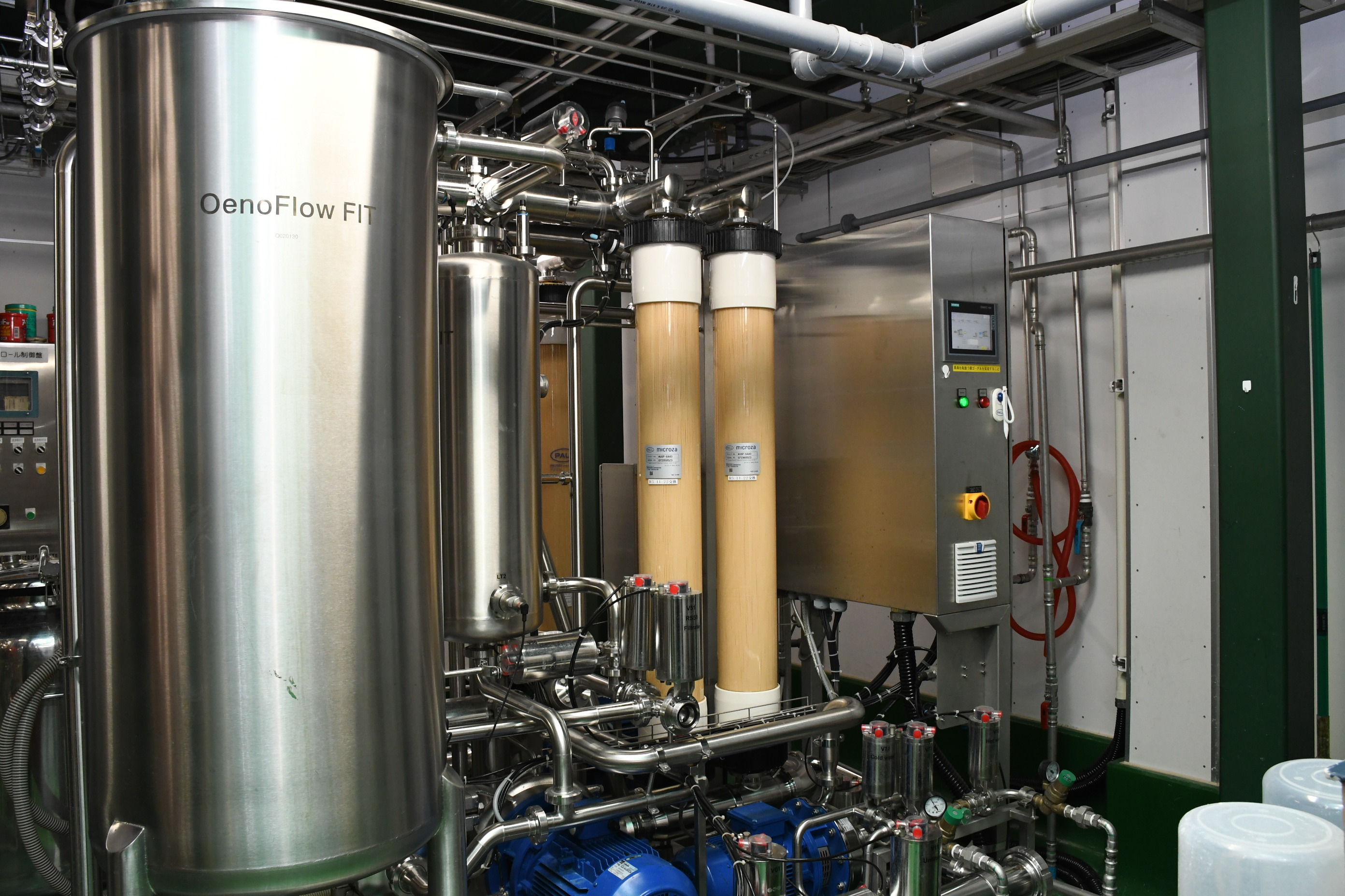 近年更新した「クロスフローモジュール」は、ろ過装置に使用する部品です。ワインの製造工程において、微細な孔を通して沈殿物や微生物を取り除くことで、より透明感のある美しいワインへと仕上げます。品質の安定化に直結する重要な設備です。さらに、町営圃場で使用するブドウの剪定作業の機械も導入されました。