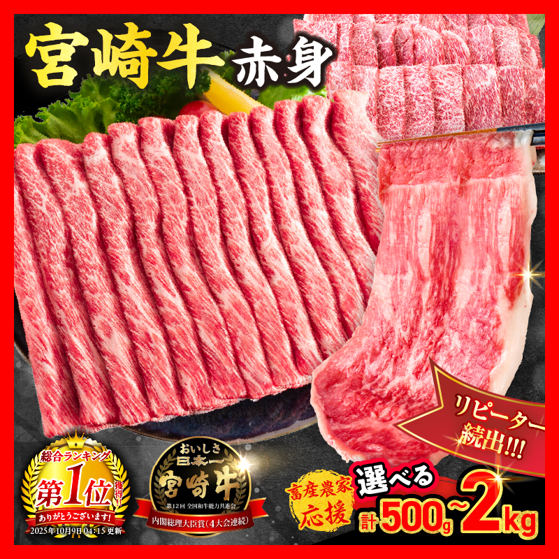 全国的にも評価の高い宮崎牛。中でも赤身肉は、脂の甘みと赤身の旨みのバランスが魅力です。すき焼きやローストビーフ、焼肉など、幅広い料理でその味わいを楽しめます。