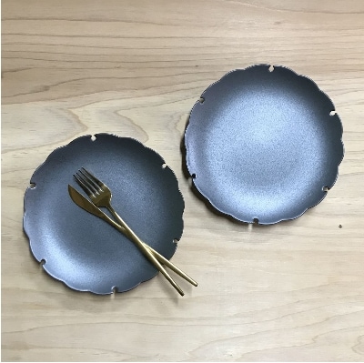 普段のお料理を華やかに美しく見せてくれるオトナの黒い器(有田焼雪輪7寸皿2枚セット)