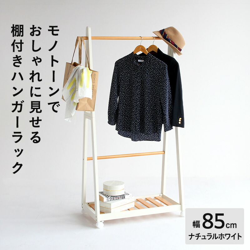 モノトーンでおしゃれに見せるハンガーラック。キャスター付きでお掃除等での移動も楽チンです。