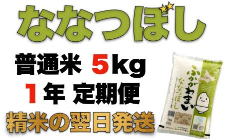 北海道深川市 【1年定期便・精米翌日発送・翌月発送】道産品種の中で最も生産量が多いお米を5kgで12回お届け 「ななつぼし1年定期便(5kg×12回発送)」 102,000円 出典:ふるなび