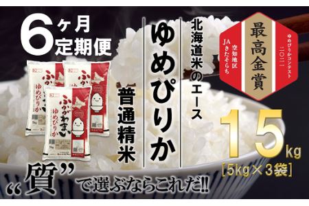 北海道深川市 【新米先行予約・10月から発送】【定期便・精米翌日発送】北海道米のエース品種を6回お届け「ゆめぴりか無洗米定期便(15kg(5kg×3)×6回発送)」 132,000円 出典:ふるなび