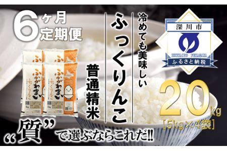 北海道深川市 【定期便・精米翌日発送・翌月発送】北海道米産地限定品種を6回お届け「ふっくりんこ定期便(20kg(5kg×4)×6回発送」 132,000円 出典:ふるなび