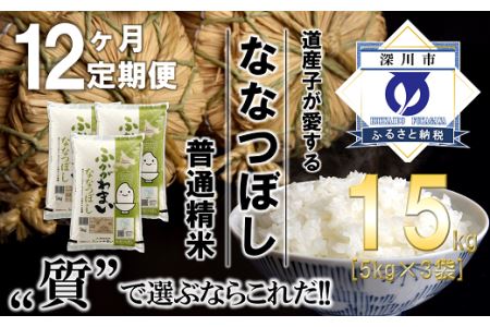 北海道深川市 【定期便・精米翌日発送・翌月発送】道産品種の中で最も生産量が多いお米を12回お届け「ななつぼし定期便(15kg(5kg×3)×12回発送)」 216,000円 出典:ふるなび