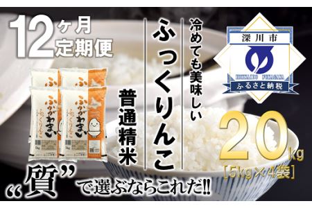 北海道深川市 【定期便・精米翌日発送・翌月発送】北海道産米産地限定品種を12回お届け「ふっくりんこ定期便(20kg(5kg×4)×12回発送」 264,000円 出典:ふるなび