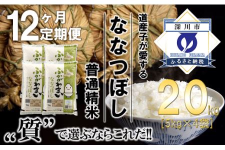 北海道深川市 【定期便・精米翌日発送・翌月発送】道産品種の中で最も生産量が多いお米を12回お届け「ななつぼし定期便(20kg(5kg×4)×12回発送)」 276,000円 出典:ふるなび