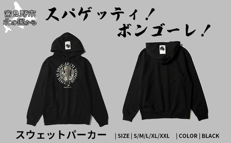 北海道富良野市 北の国から『スパゲッティ!ボンゴーレ!』スウェットパーカー 黒 Lサイズ 41,000円 出典:ふるなび