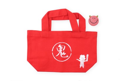 北海道登別市 鬼グッヅD 赤(おでかけバッグ・缶バッチ) 5,000円 出典:ふるなび