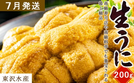 北海道知内町 7月発送分予約受付・極上!「生うに」200g【東沢水産】【JJ059】 22,000円 出典:ふるなび