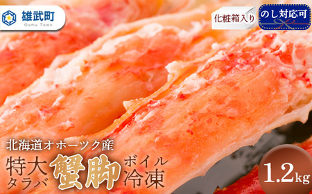 北海道雄武町 【中国禁輸措置生産地緊急支援品】『熨斗あり』北海道オホーツク産 極上・特大タラバ蟹足1.2kg6L 1肩4本(ボイル)化粧箱 冷凍【12133】 38,000円 出典:ふるなび