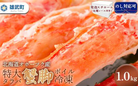 北海道雄武町 【中国禁輸措置生産地緊急支援品】『熨斗あり』北海道オホーツク産 極上・大タラバ蟹足 1.0kg 5L 1肩4本(ボイル) 冷凍【12134】 32,000円 出典:ふるなび