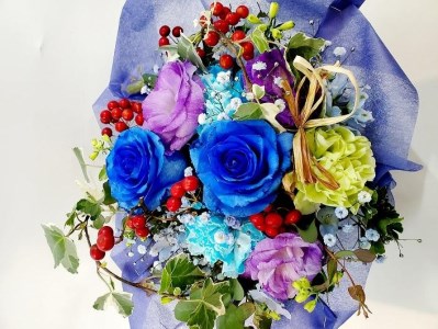 岩手県盛岡市 【田村フローリスト】ブルーローズのアレンジメント イリス 19,000円 出典:ふるなび
